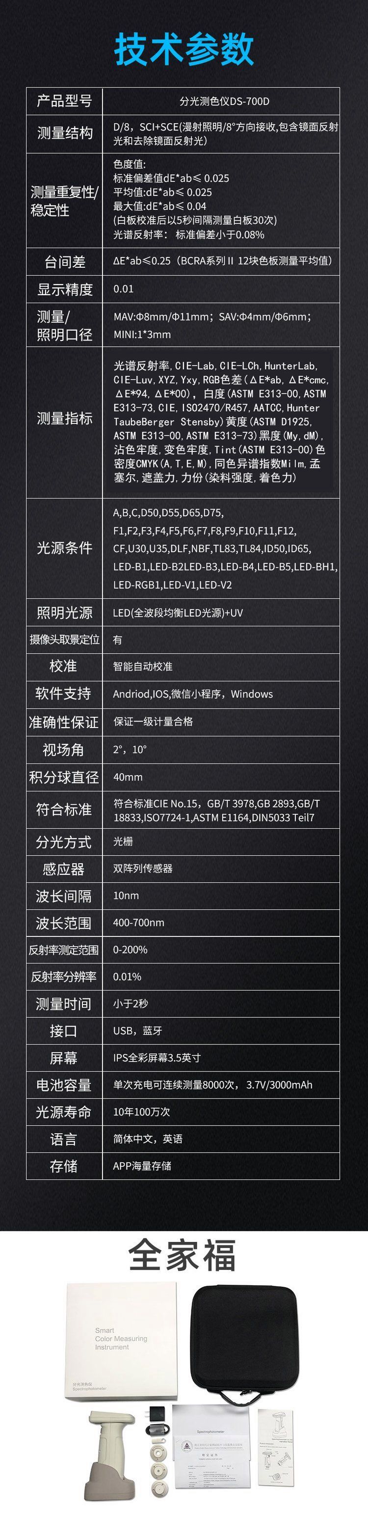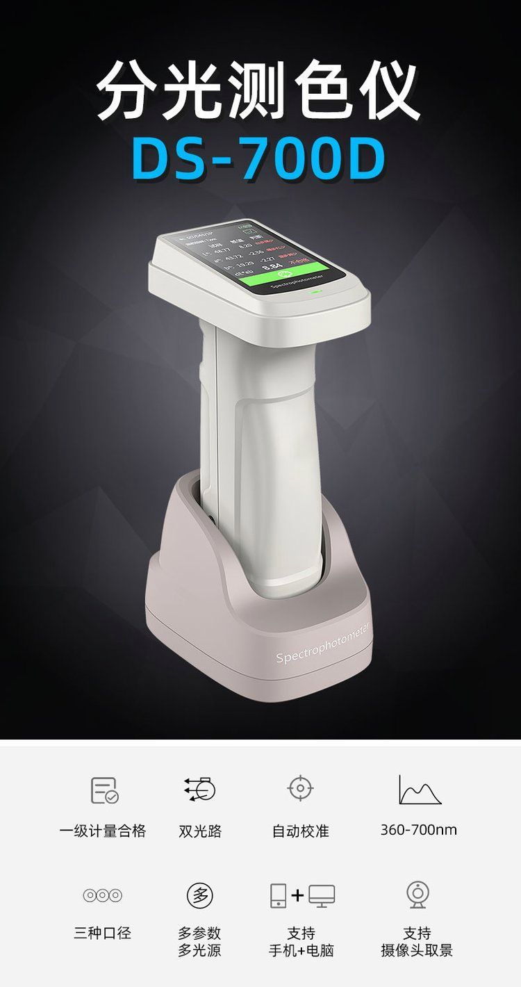 DS-700系列是基于45/0环形照明光学结构设计,创新的环形照明系统,剔除了方向依赖性,将纹路带来的影响降到最低。它延续了DS-700A系列的高精度基因(△E*ab≤0.2),同时通过功能简化与成本优化,成为纺织、印刷、塑胶等行业的理想选择。