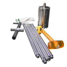 击打手柄 1个、50cm延长杆4个 、直径10cm长15cm根钻1个、吸能锤1个、扳手2个、手套1副、刮刀1把,钢卷尺1把、便携包1个